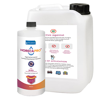 It is a regularly required multi-purpose ADVANCED hygiene application in the HoReCa, F&B and Hospitality industries; recommended before re-using work surfaces and processing areas. (Food Processing and Cooking Area, Hotel Furniture, Containers/Plates/Crockery/Tray, Pools & Spa, Sinks/Showers, Toilet/WCs etc.)